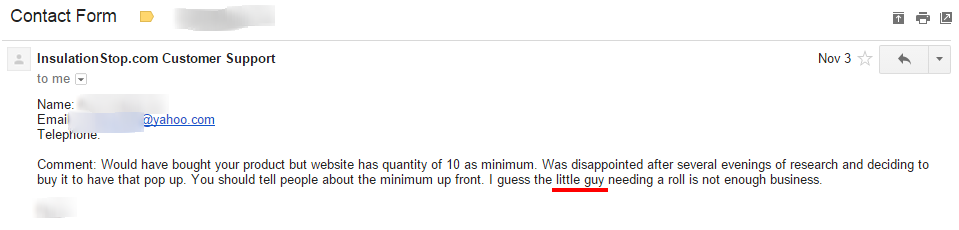 Recently on our contact us page, a somewhat frustrated customer sent in the following message. We quickly responded and within a few short emails had addressed his concerns.
