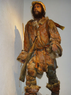 Otzi the Ice Man is a mummified Neolithic corpse possibly 5300 years old who was discovered in 1991 buried on a mountainside in the Italian-Austrian Alps. What’s fascinating about Otzi is the type and amount of insulative clothing he wore–a goat and deer-hide jacket, a loincloth, leggings, a cape made from bark and Alpine grass, a bearskin hat and shoes composed of goat and bear skin insulated with hardy grass types.
